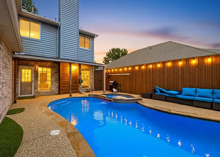 Além disso, esta casa de férias fica a uma distância de 3.8 km de Celebration Park e a uma distância de 4.8 km de Allen Premium Outlets. Situada a cerca de 15 minutos andando de Chase Oaks Church, a pousada Newly Updated 5Br/2.5Ba W/Pool Sleep 16 Ppl• é popular entre os fiéis e os turistas.
